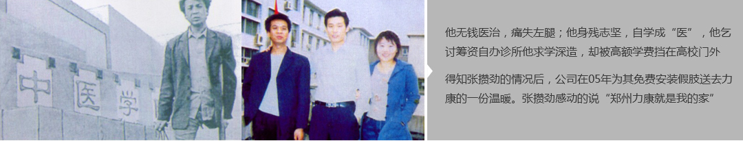 鄭州市力康假肢矯形器有限公司(簡(jiǎn)稱(chēng)力康),是一家專(zhuān)業(yè)從事假肢矯形器的設(shè)計(jì)、研發(fā)、制作及裝 配的專(zhuān)業(yè)機(jī)構(gòu)。成立于1992年是河南省唯一一家福利企業(yè)。力康下設(shè)業(yè)務(wù)部、技術(shù)部、住院部、康復(fù) 部、售后服務(wù)部,并配有現(xiàn)代化的裝配車(chē)間和功能齊全的訓(xùn)練大廳,為殘疾朋友康復(fù)訓(xùn)練提供了可靠 保障。總經(jīng)理穿戴假肢多年,有著豐富的臨床經(jīng)驗(yàn)和親身體會(huì);多年來(lái),力康已為全國(guó)幾十萬(wàn)名殘疾 朋友安裝上舒適、美觀(guān)、耐用的假肢和矯形器具,使他們更大限度地恢復(fù)了正常的工作和生活。“產(chǎn) 品即人品”的質(zhì)量理念、先進(jìn)的技術(shù)、實(shí)惠的價(jià)格、完善的售后服務(wù)是力康取勝的法寶……